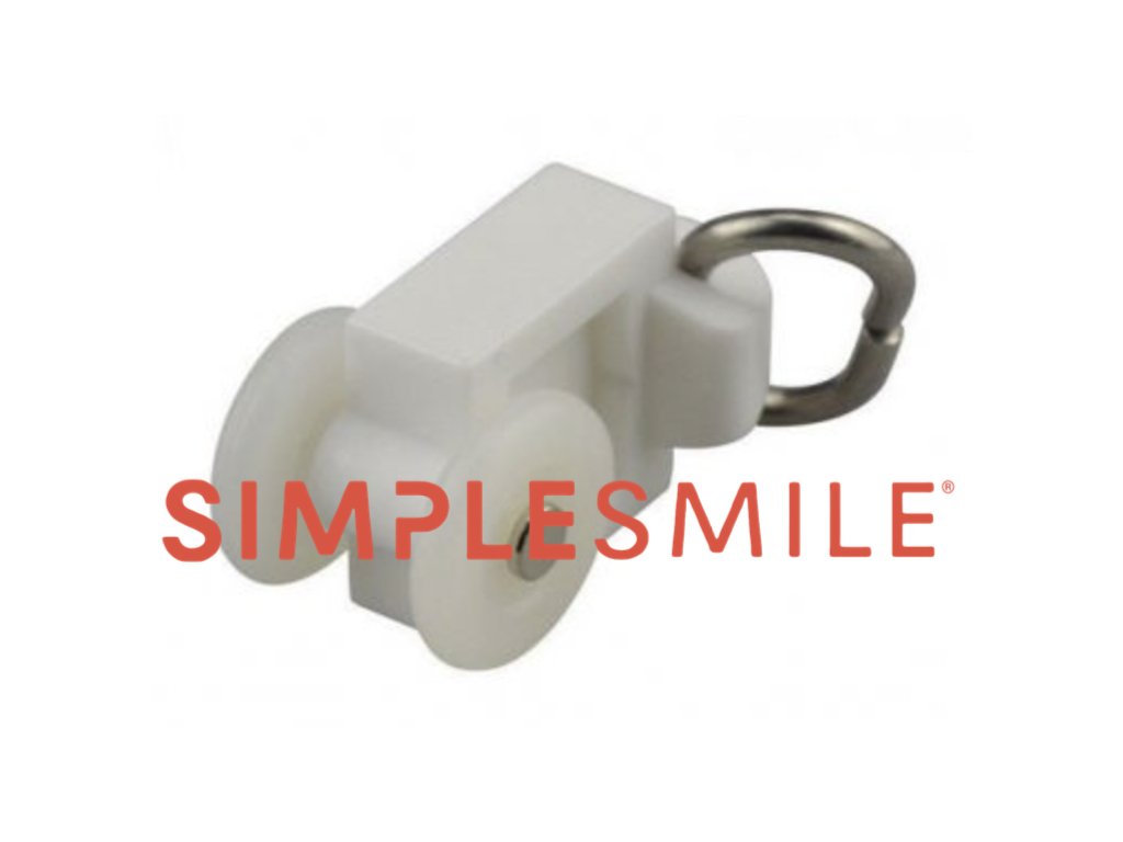 Extra tichý jezdec Simplesmile pro elektrické kolejnice a garnýže vyrobený z nerezové oceli a zušlechtěnéhoPVC - odolný proti UV záření.